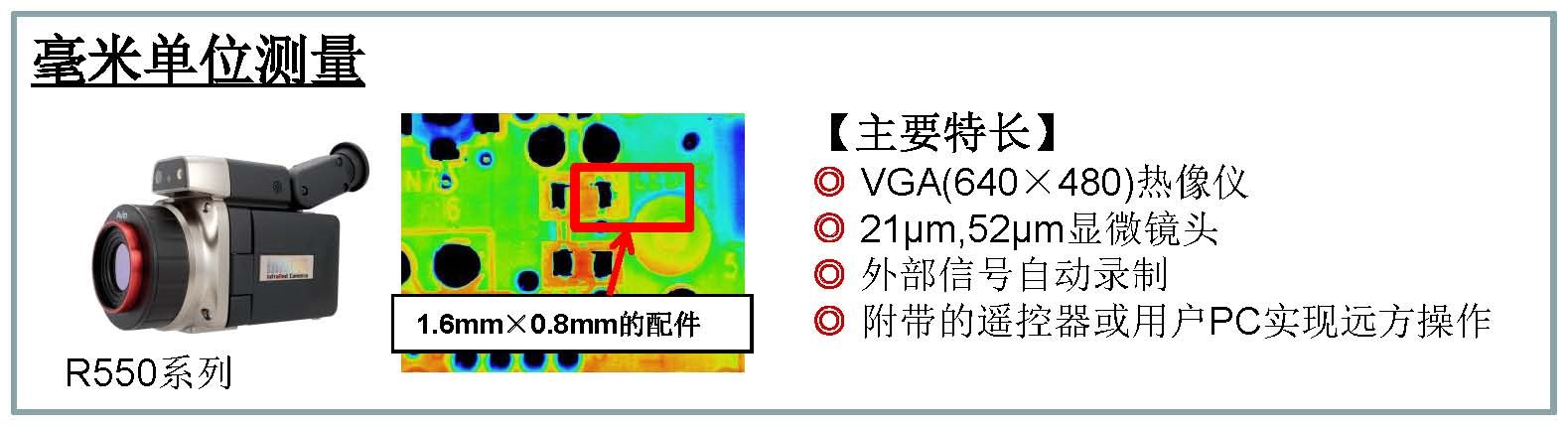 ★高分辨率顯微鏡頭(5μm,15μm)實現熱電偶無法測量的細小配件的溫度分布,應用于機器的散熱設計。